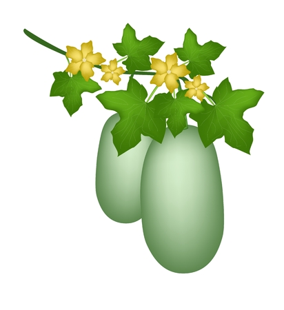 野菜やハーブ 冬メロン苗 ワックス瓢箪植物またはドッグフードと花のつるに掛かっている Chalkumra 植物のイラスト のイラスト素材 ベクタ Image